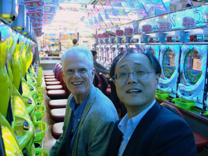 会議の他にも、忘れられない思い出がたくさんあります。これは桑原先生とのパチンコです。 |
